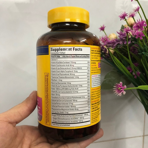 Vitamin cho bà bầu Nature Made Prenatal Multi + DHA là một giải pháp lý tưởng cho các bà mẹ, phụ nữ đang mang thai, những phụ nữ đang mong muốn mang thai. Với công thức bổ sung 23 vitamin, khoáng chất, vitamin bà bầu Nature Made giúp bổ sung dinh dưỡng thiết yếu cho cơ thể phụ nữ khi mang thai và hỗ trợ quá trình hình thành phát triển thai nhi.